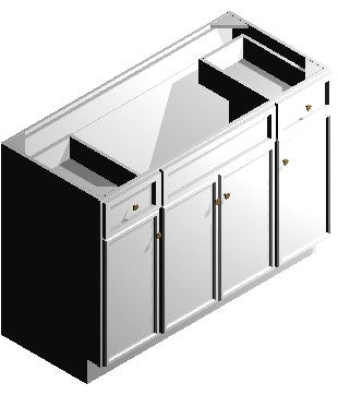 48″ vanity sink base with double doors in the center and a drawer on each side (left and right). Maximum width for full vanity storage layout.