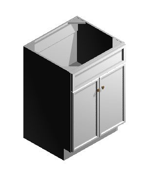 24″ vanity sink base with two doors and no drawers. Compact cabinet ideal for powder rooms or tight layouts.