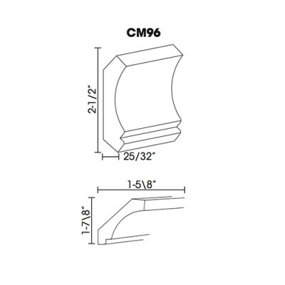 Standard crown molding – 96" long. Decorative top trim for finishing upper wall cabinets and ceiling transitions.